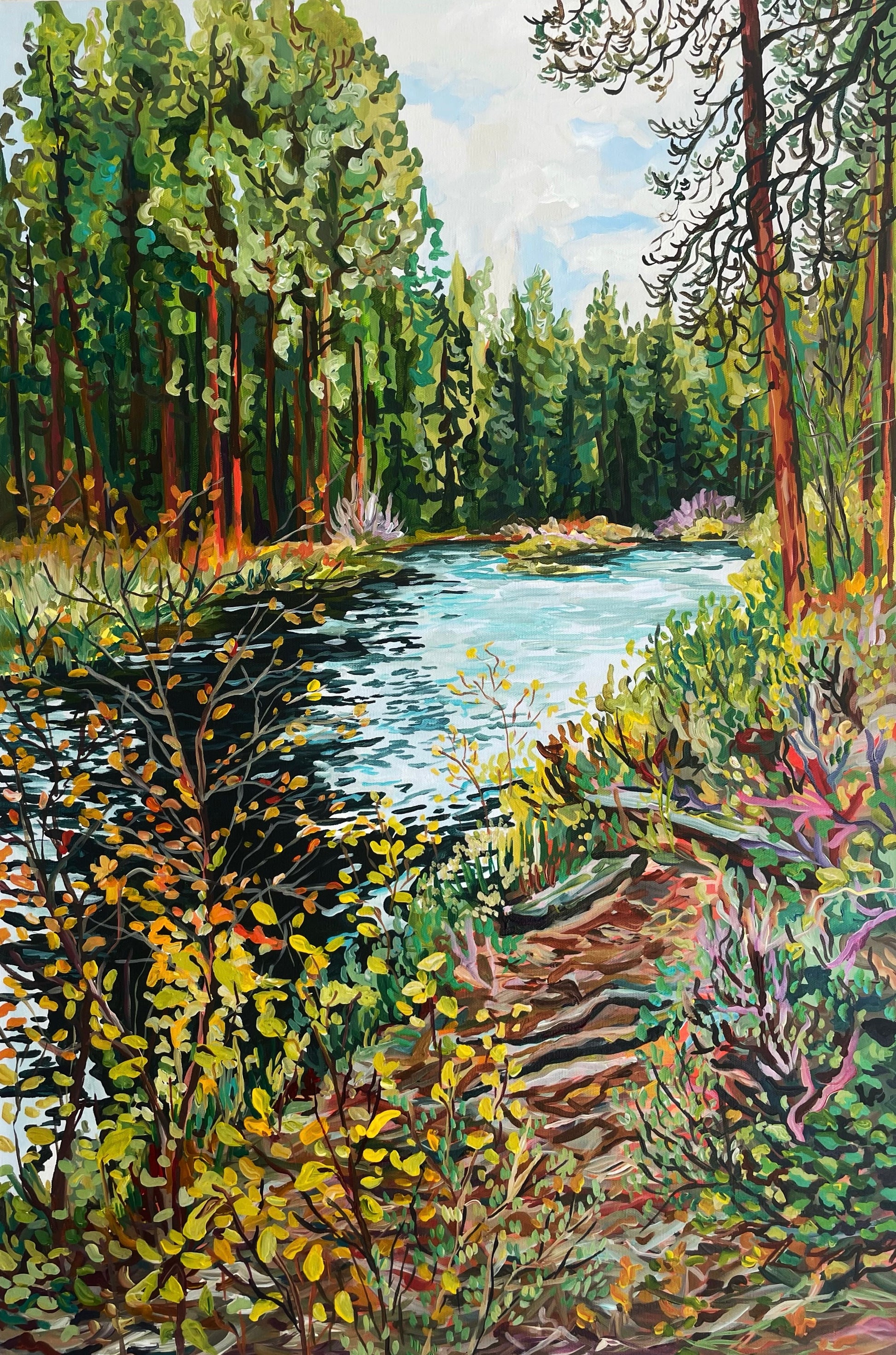 "A Walk Along the Metolius" is inspired by the calm Metolius River near Camp Sherman in Central Oregon. *This piece is currently on display at Cha Cha Cha Restaurant at Cascade Station*