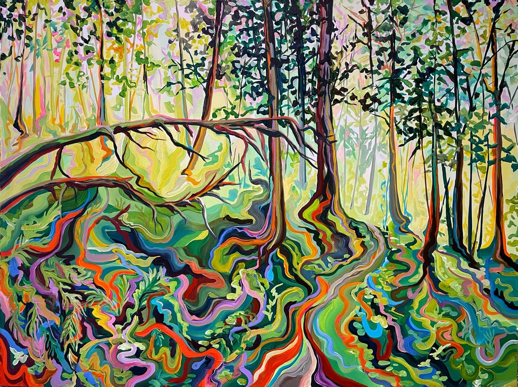 "Forest Auras" is on view at Hopscotch PDX in their gift shop's art gallery. To arrange a showing, please contact Anisa: hello@anisaasakawa.com. This piece will be on display at Hopscotch through the end of March 2024 unless otherwise noted. Please contact Anisa if you need shipping or delivery of this piece before August 2023!