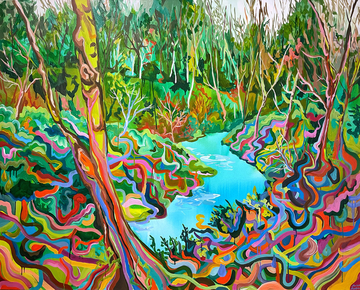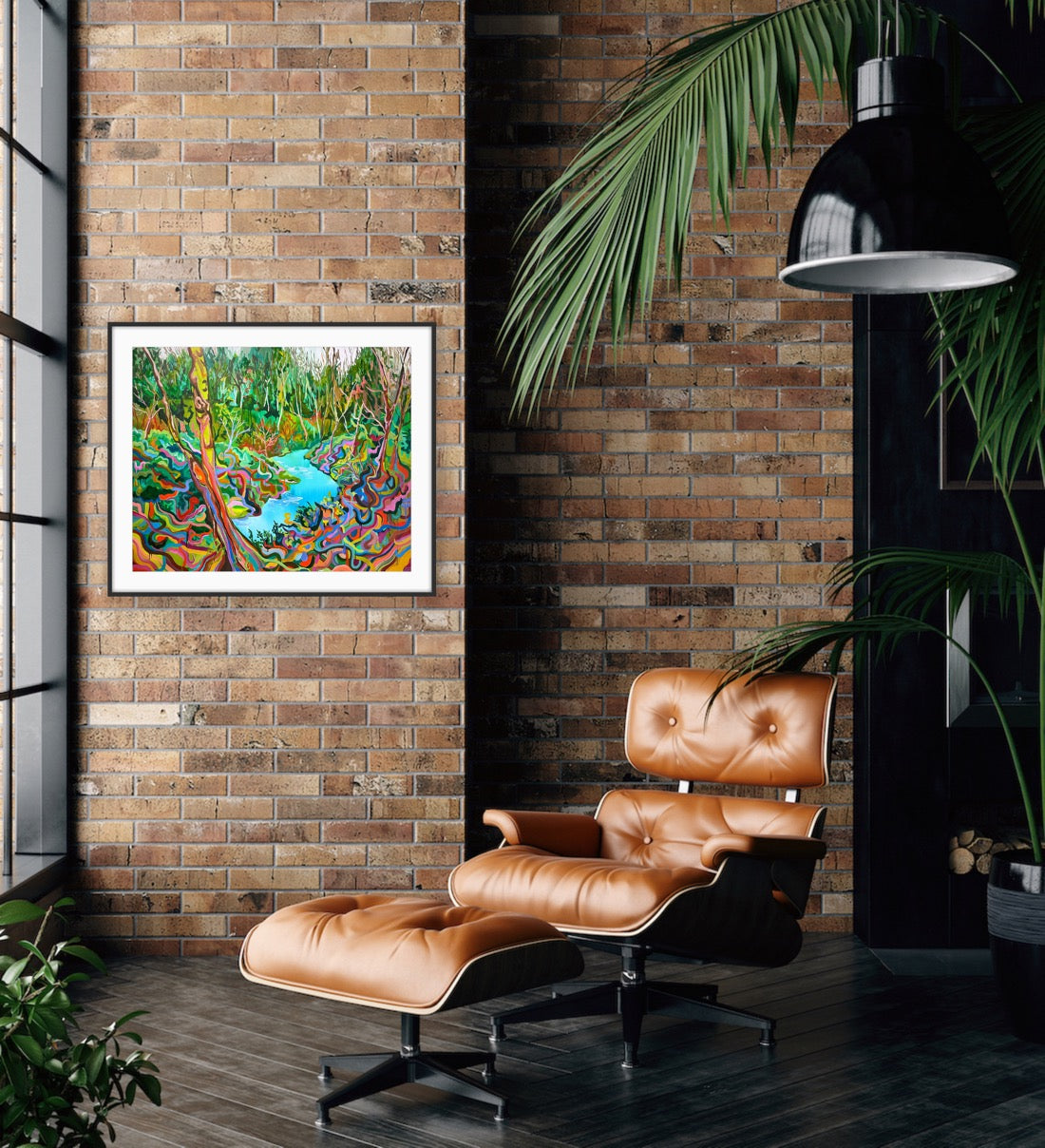 "This is a print of my painting titled 'Into the Beyond' and it is inspired by both the local creeks and rivers in Portland and the many tropical rivers and streams I've lived near during my childhood. Bodies of water always inspire me with their powerful energy and calming sounds." -Anisa
