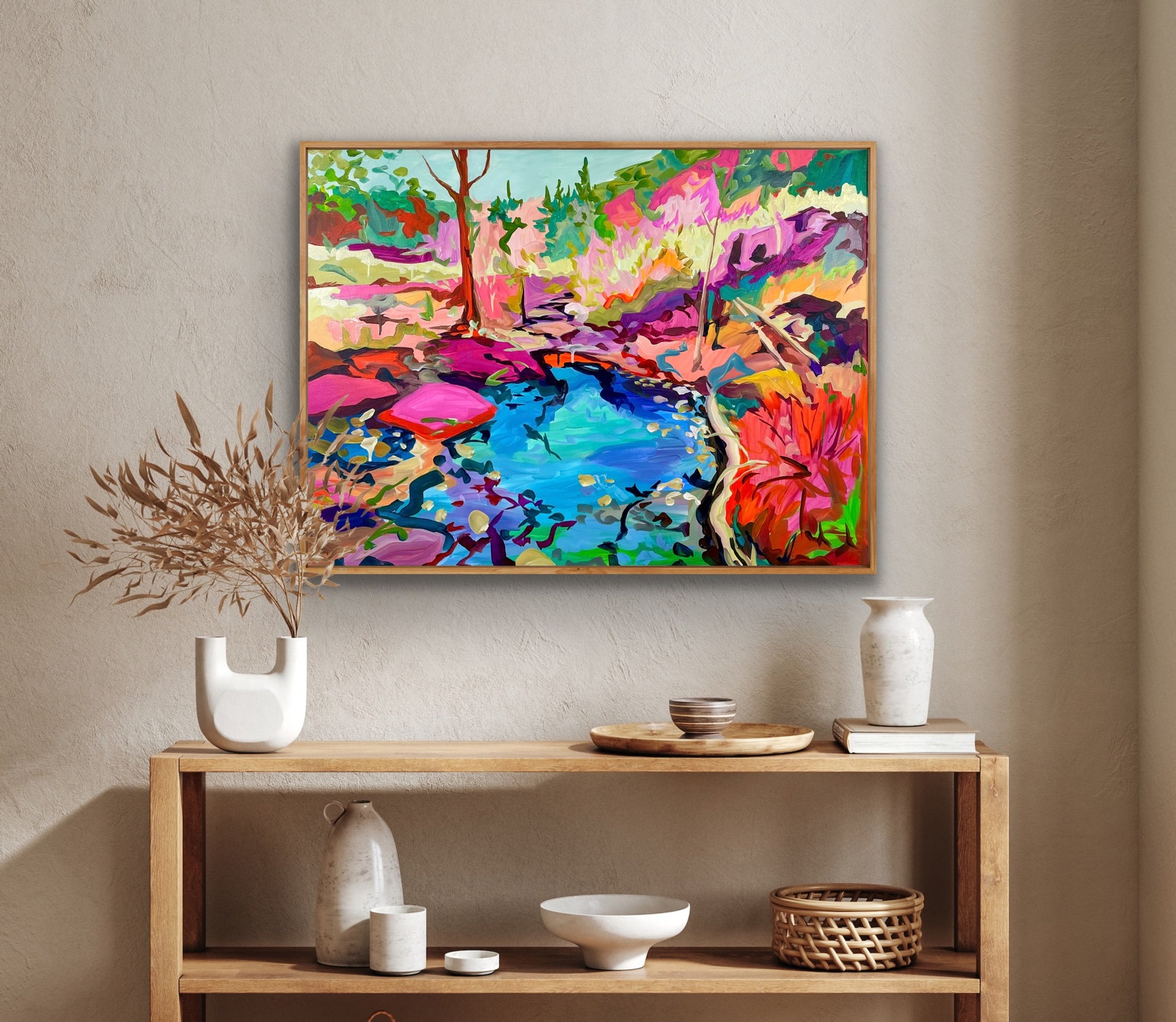 Acrylic on canvas This painting is sealed with archival, museum quality varnish to protect the paint from UV light. Signed and titled on the back. Framing is not included and is not required. But if framing is your thing, you can easily get this framed in whatever style you like at your local framing shop!