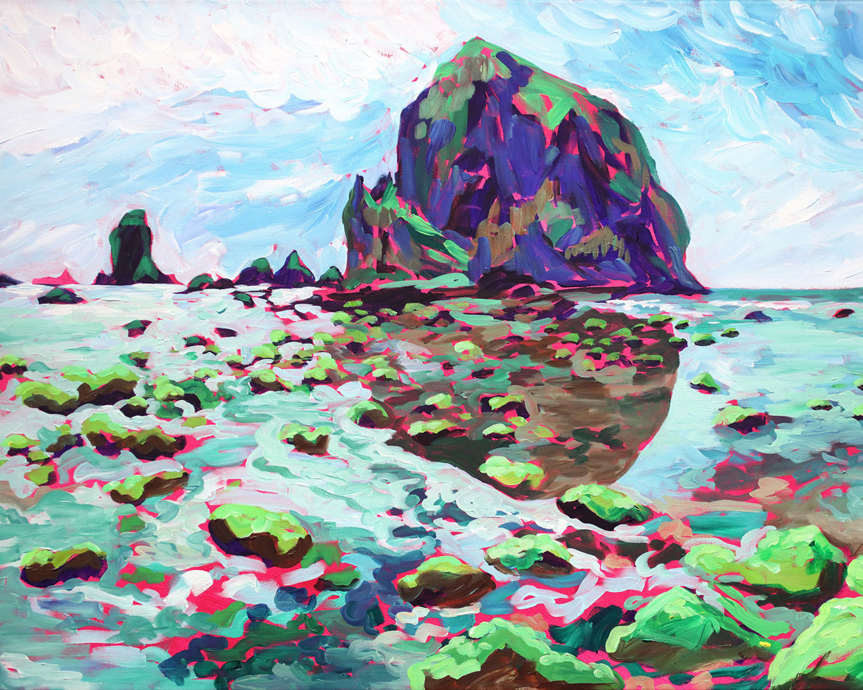 "This is a print of my painting titled 'Mermaid Tide Pools at Haystack Rock.' As someone who was born and raised in Hawaii, I love visiting the pacific ocean and am always in awe of natural wonders like Haystack Rock in Cannon Beach, OR. Wandering the tide pools with my kids is one of my favorite memories." -Anisa