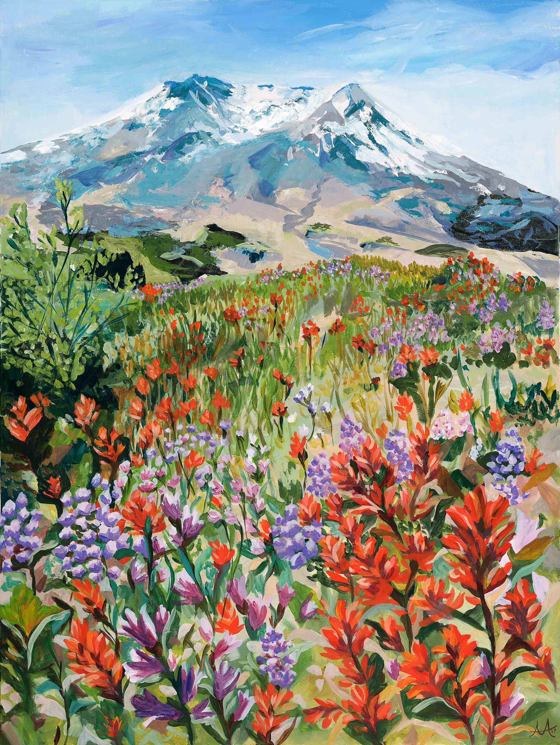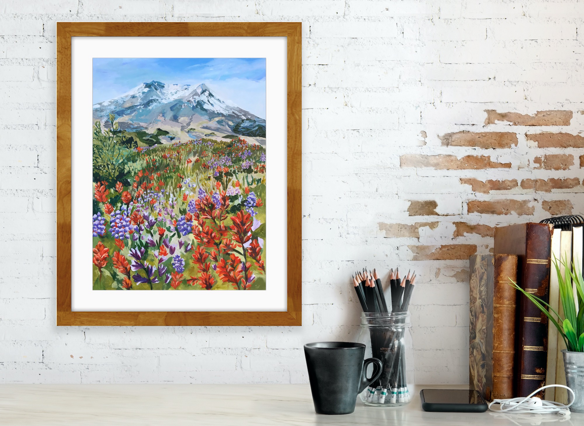 "This is a print of my painting titled 'Mount St. Helens Wildflowers' and its depiction of the stunning summertime wildflower show at Mount St. Helens National Volcanic Monument in Washington State. Wildflowers always bring me so much joy." -Anisa