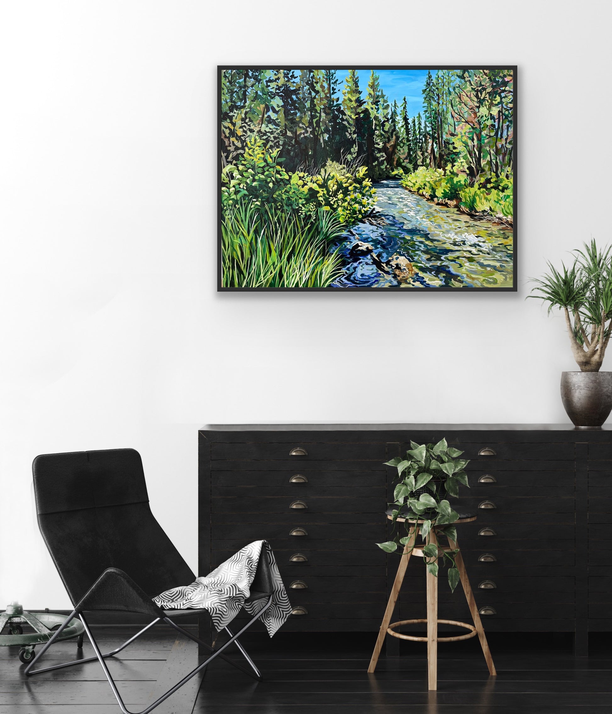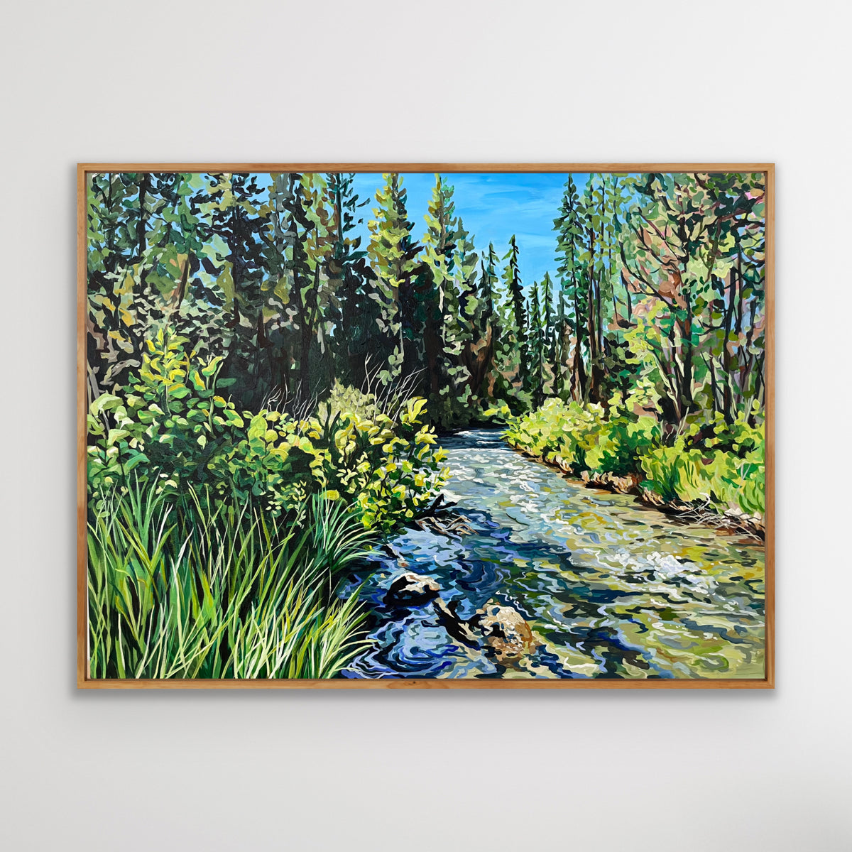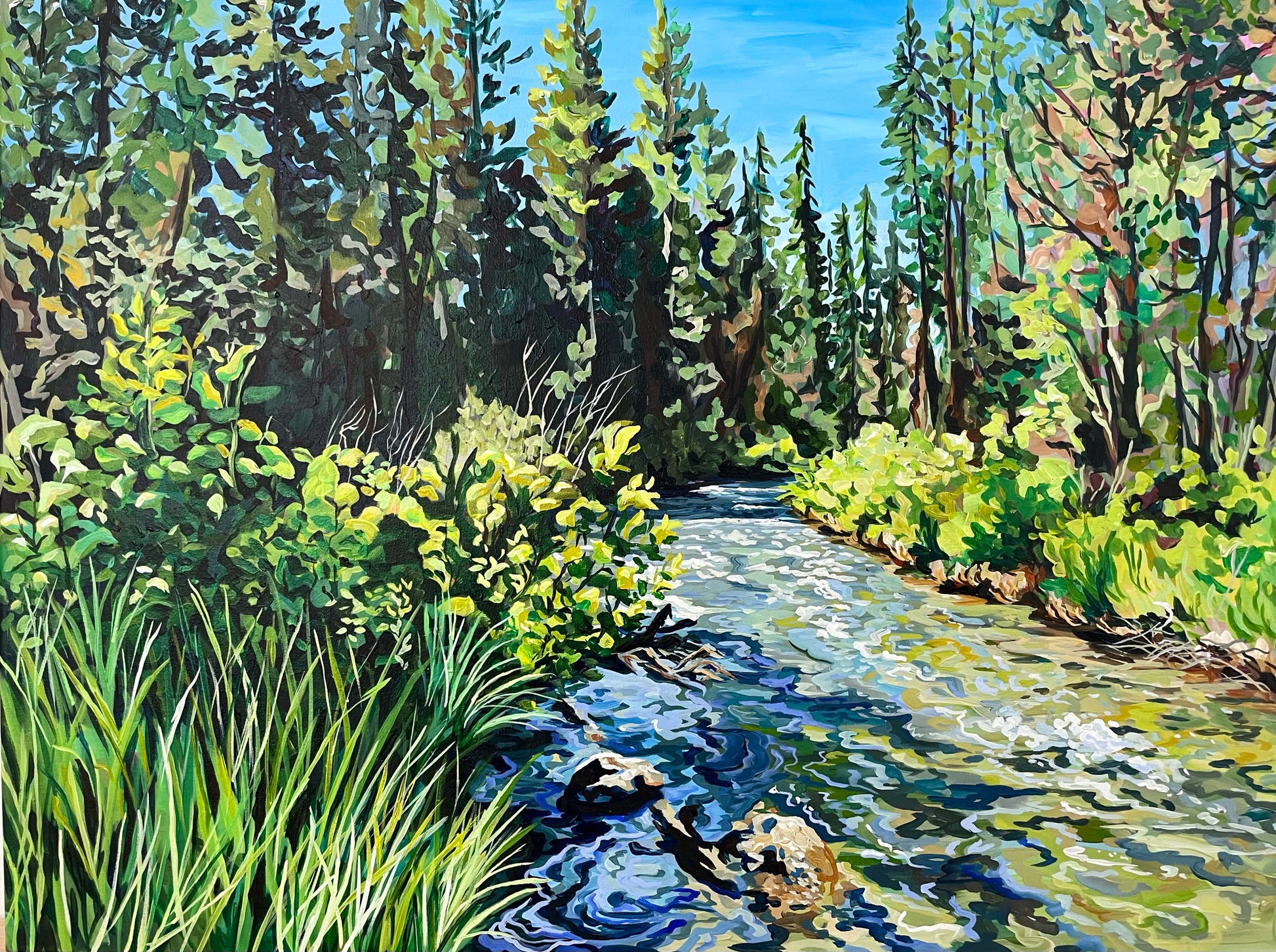 In "Tumalo Creek in Shevlin Park" is on view at The Nines Luxury Hotel in downtown Portland in their Morrison St. windows for the month of March 2024. Please contact Anisa if you need shipping or delivery of this piece before April 2024!