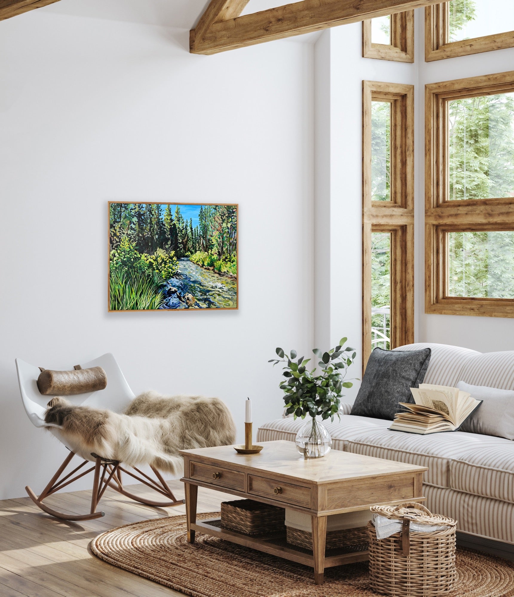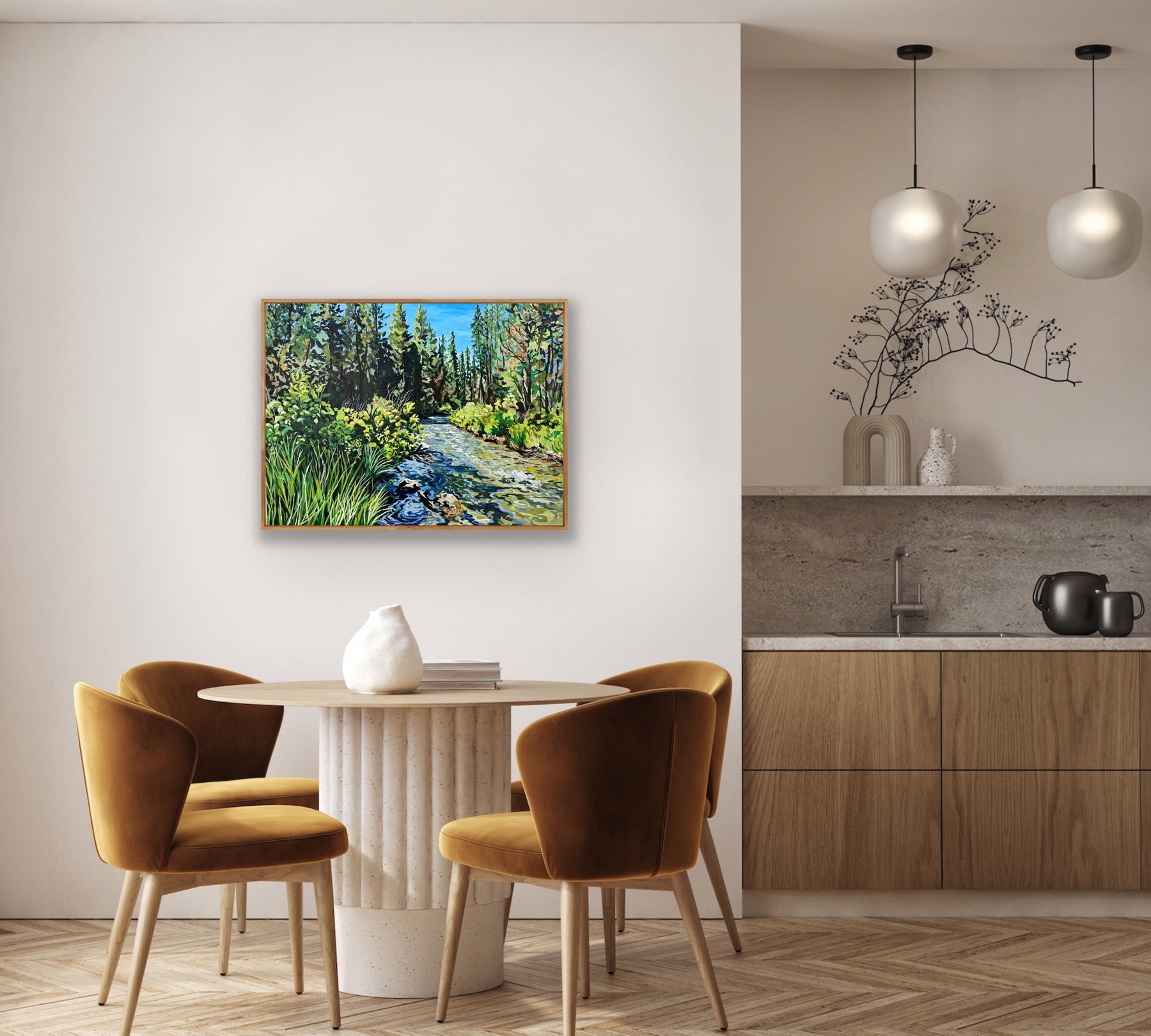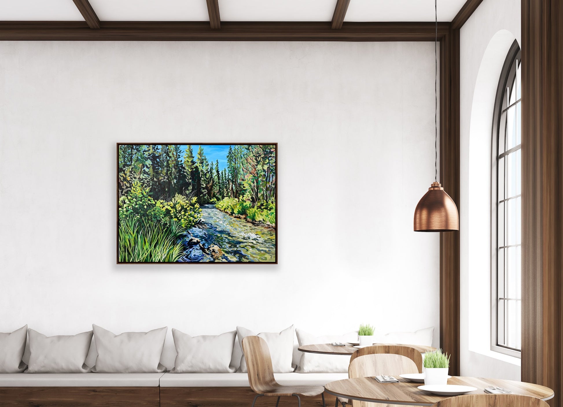 In "Tumalo Creek in Shevlin Park" is on view at The Nines Luxury Hotel in downtown Portland in their Morrison St. windows for the month of March 2024. Please contact Anisa if you need shipping or delivery of this piece before April 2024!