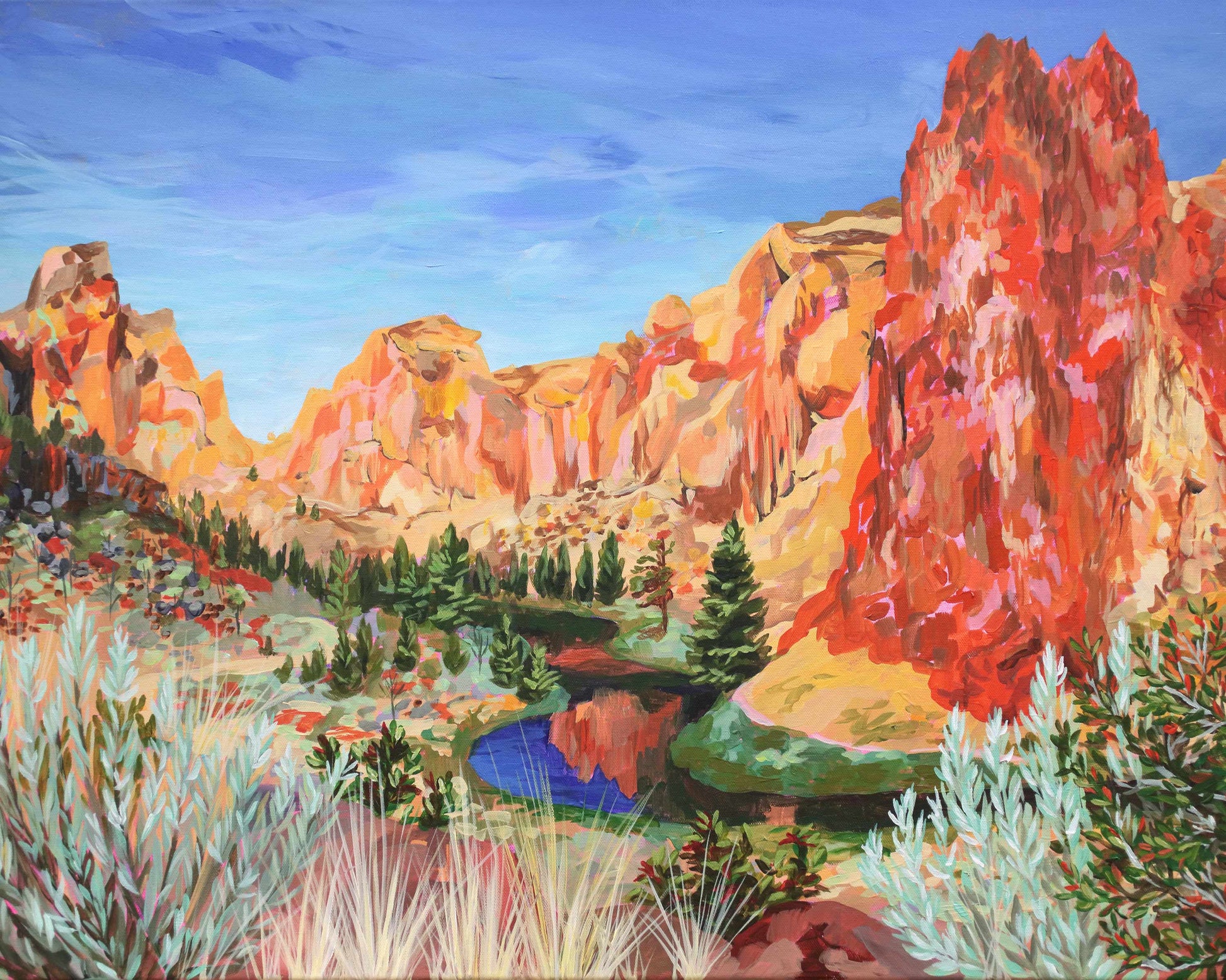 "This is a print of my painting titled 'Smith Rock Vista' featuring one of our favorite high desert hiking trails near Bend, OR. We always visit Smith Rock and look for rock climbers in the summer while walking along the easy paved trail with our whole family. A perfect nature walk for the young and old, I highly recommend visiting this place when you're in central oregon." -Anisa