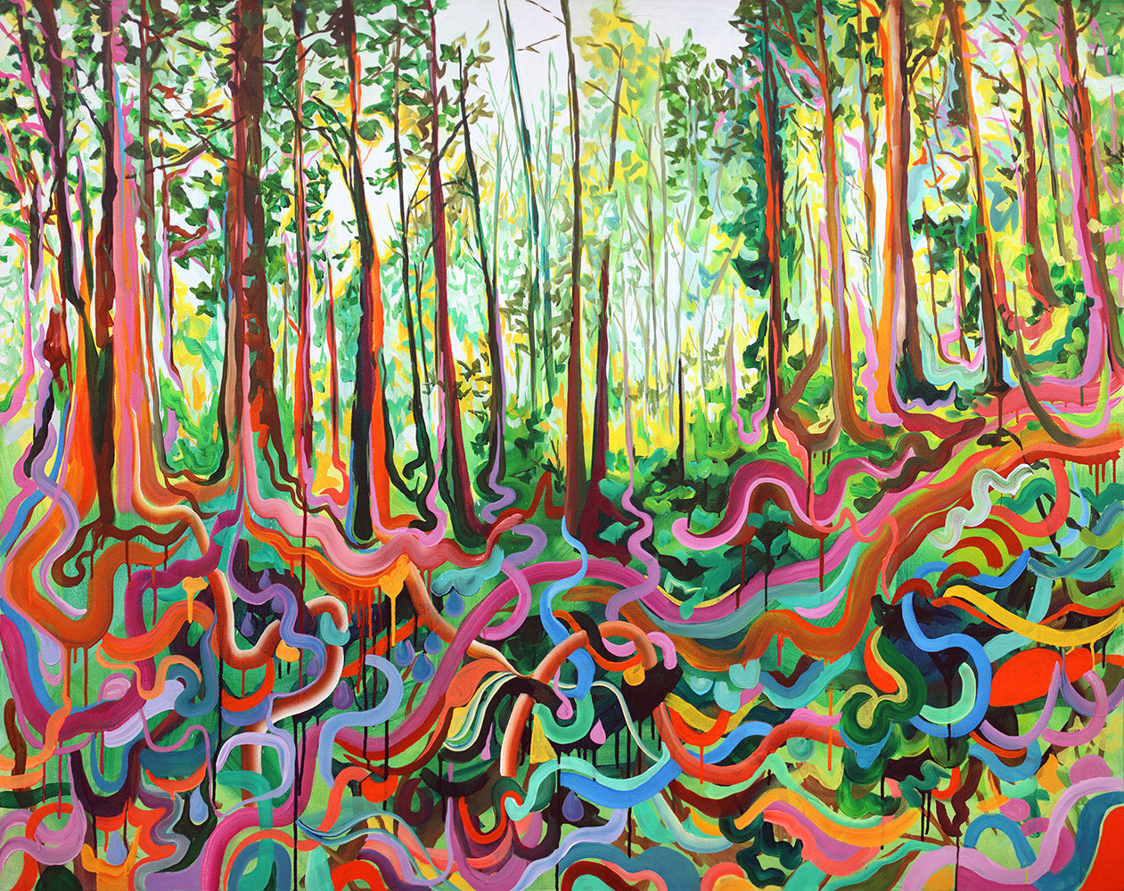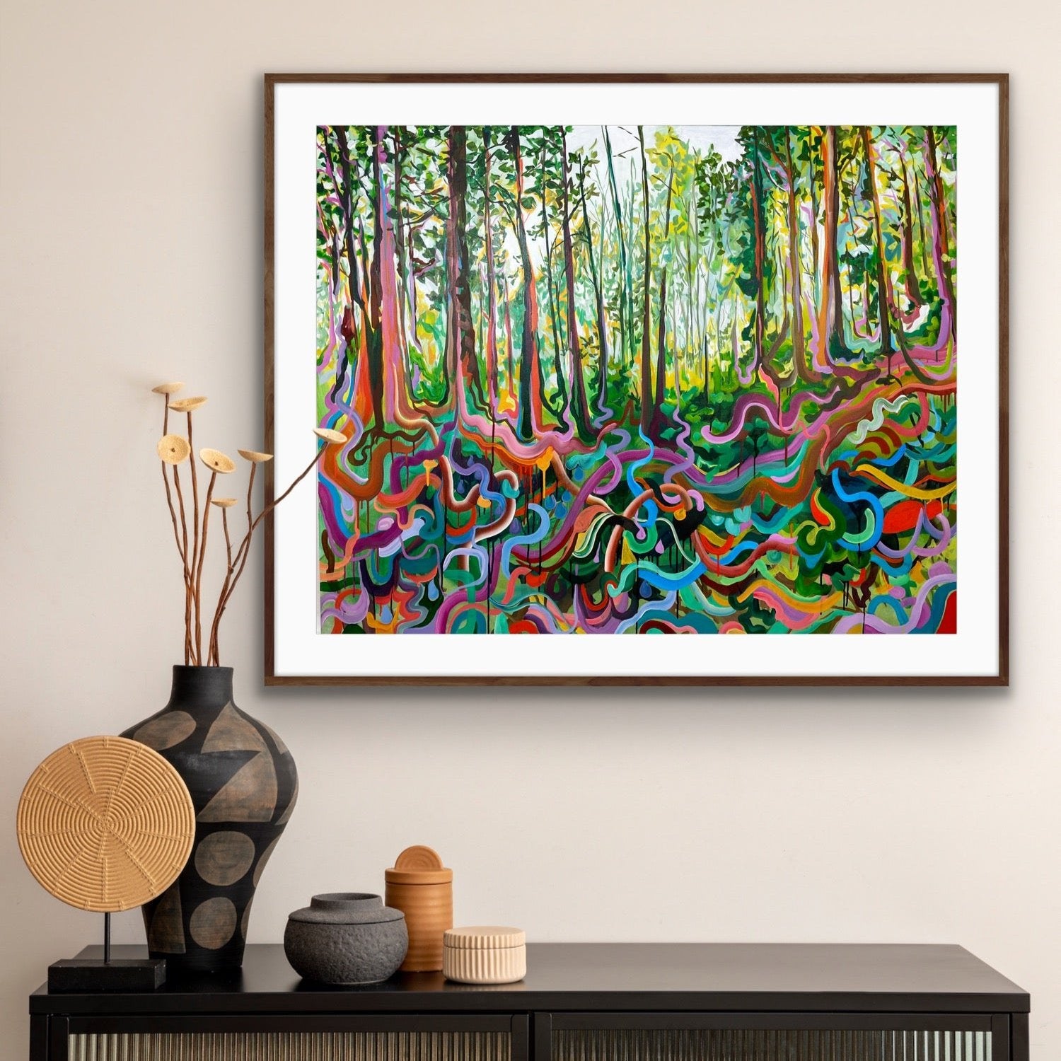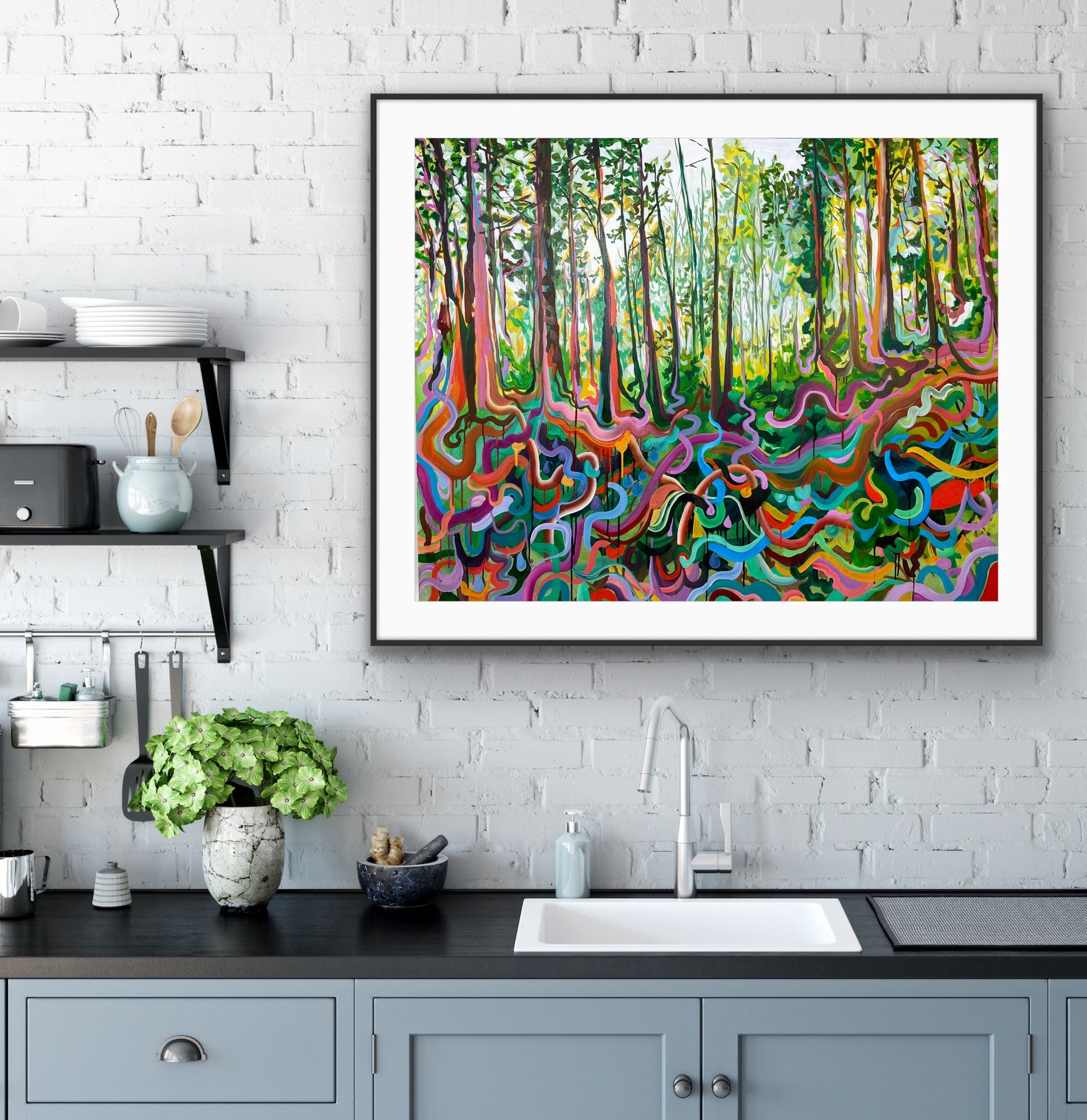 "This is a print of my painting titled 'The Rainbow Connection' and how inspired I am by the fact that so much energy is flowing all around us that is invisible to our naked eye. This piece was the first in my forest bathing series where I took a direct departure from painting from photographs to painting from my mind's eye. I wanted to paint how the forest FELT to me instead of how I saw it through a camera." -Anisa