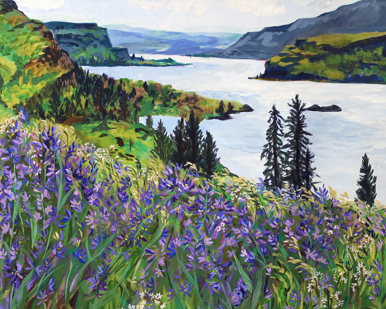 "This is a print of my painting titled 'Windswept Camas Lilies' and the beautiful wildflowers in the Columbia River Gorge on a classic, cloudy day. Sitting among these camas lilies always calms my soul." -Anisa